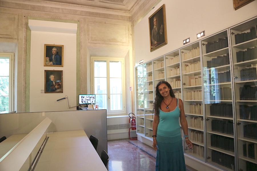 「過去には、図書館の資料はボローニャの音楽高校や音楽院などを転々と移動してきました。ヴィヴァルディやロッシーニの自筆譜など、貴重な楽譜もたくさんありますし、印刷された楽譜や教本などの資料も数多く所有しています。アーカイブには、過去にボローニャの音楽学校に提出された宿題まで残されているんですよ」